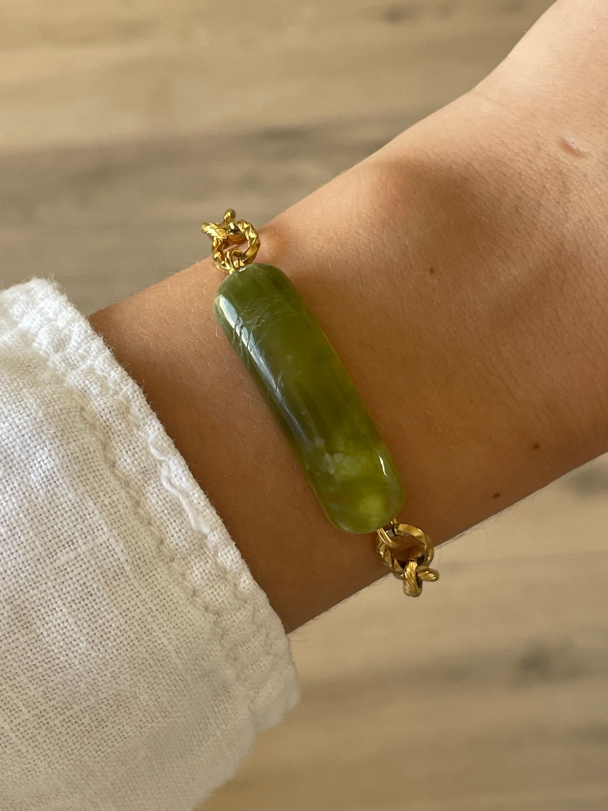 - Bracelet acier inoxydable et pierre naturelle (Jade)
