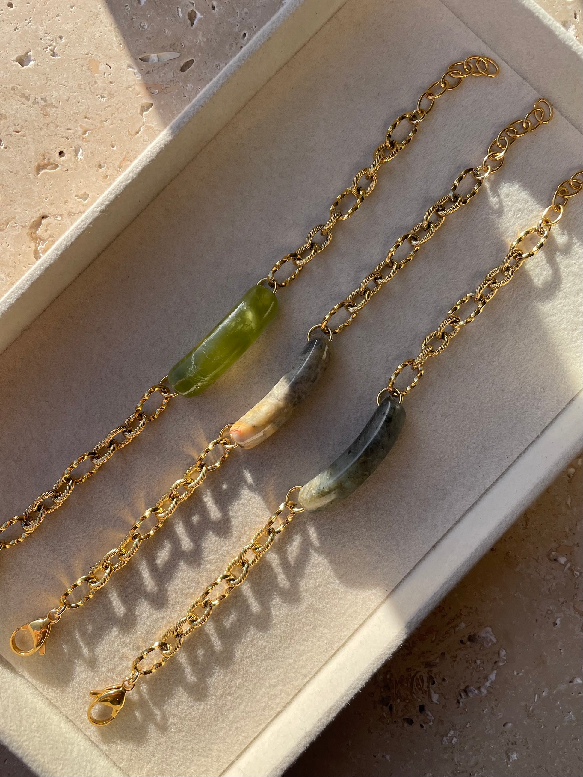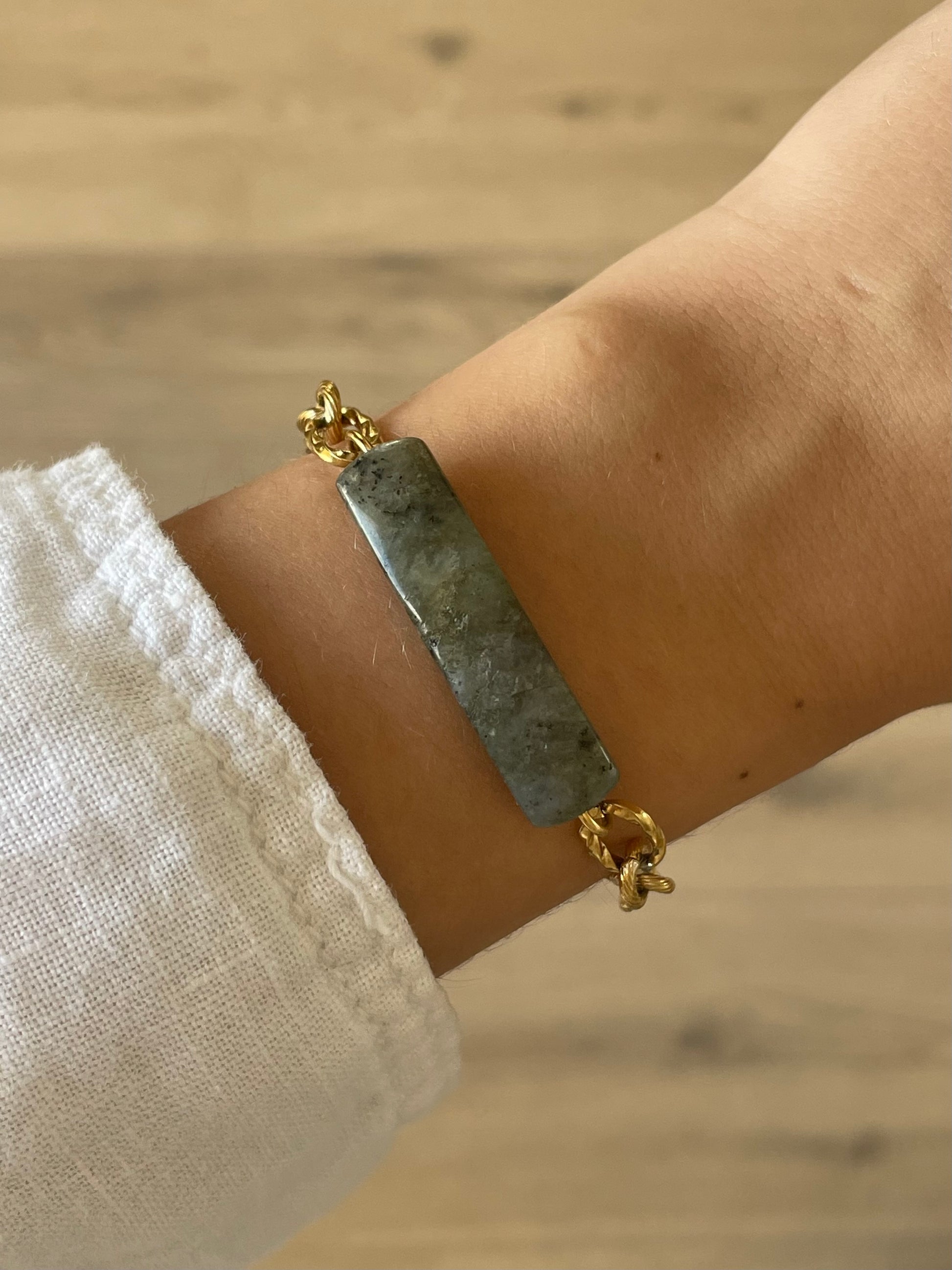 - Bracelet acier inoxydable et pierre naturelle ( Labradorite)