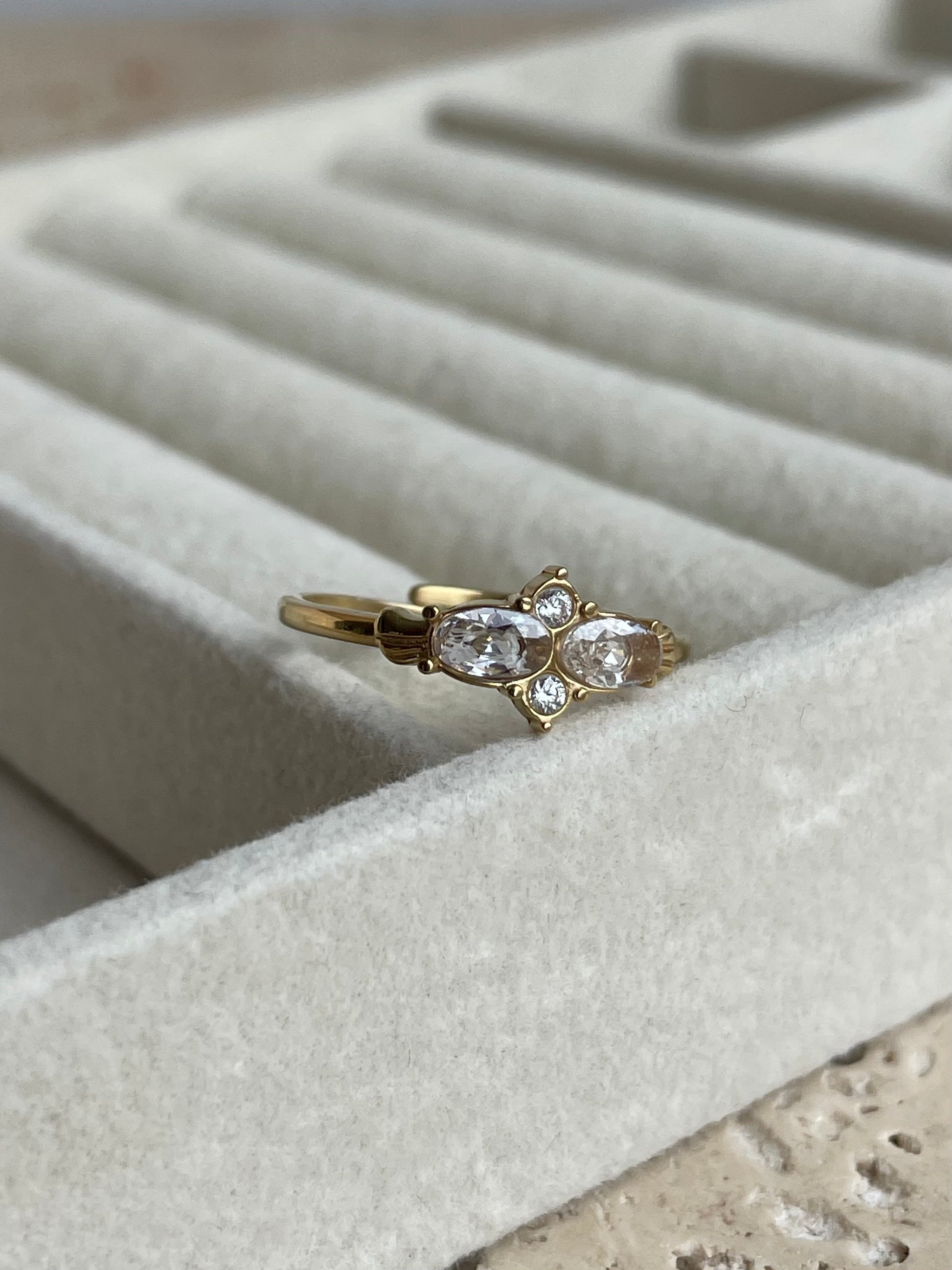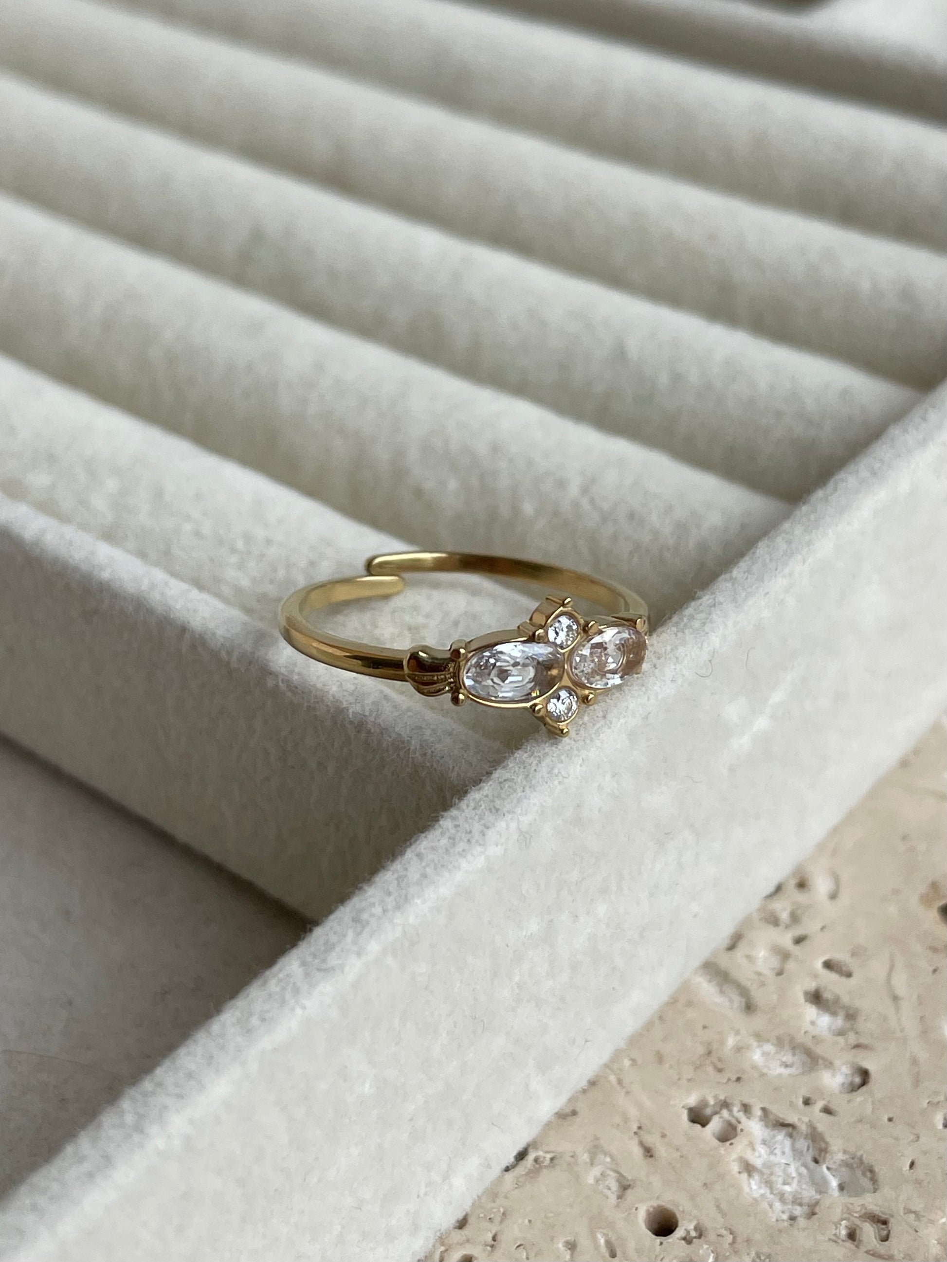 - Bague en acier inoxydable et pierres en zirconium