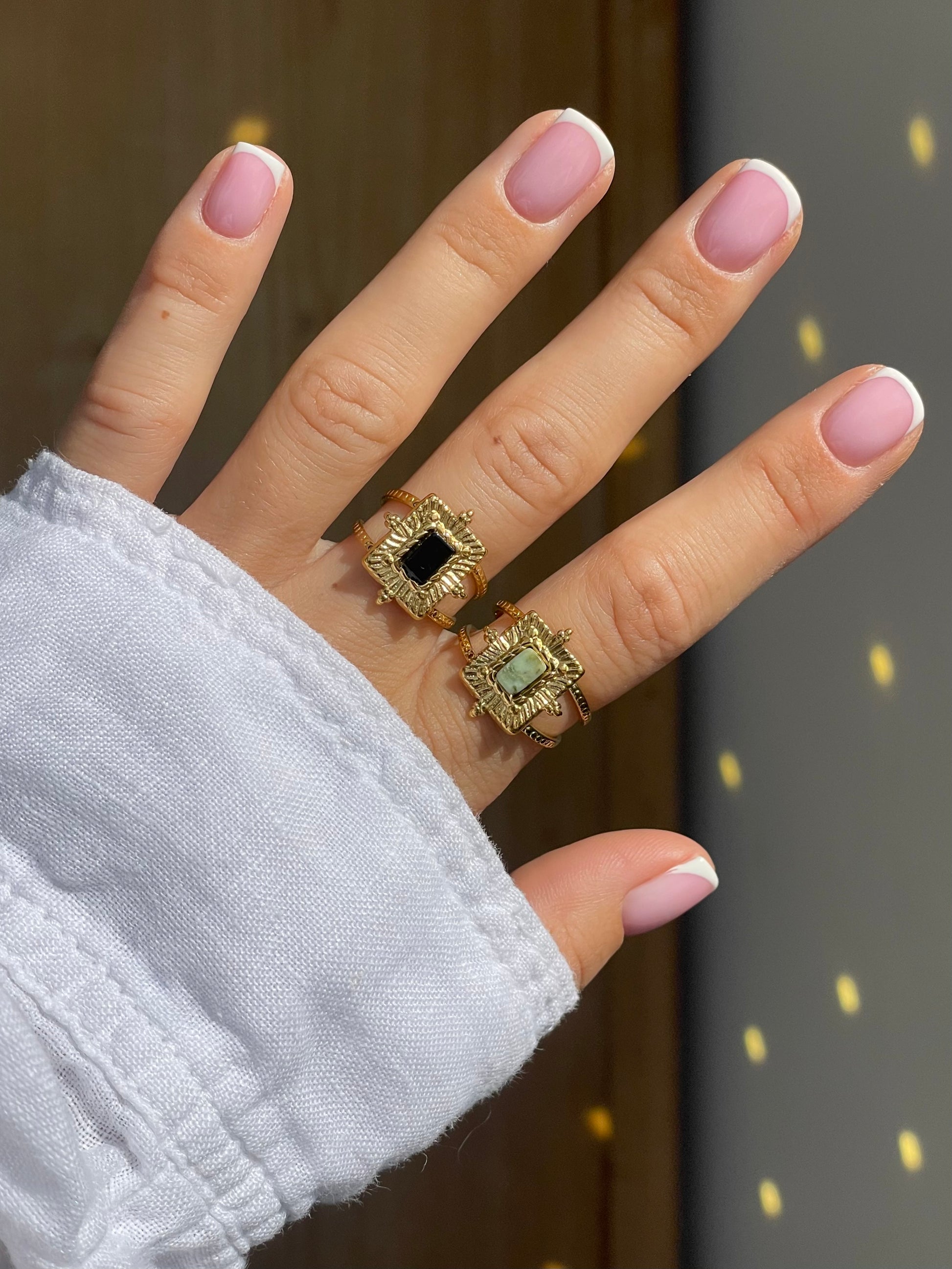 Bague en acier inoxydable et pierres naturelles (turquoise africaine et agathe noir)